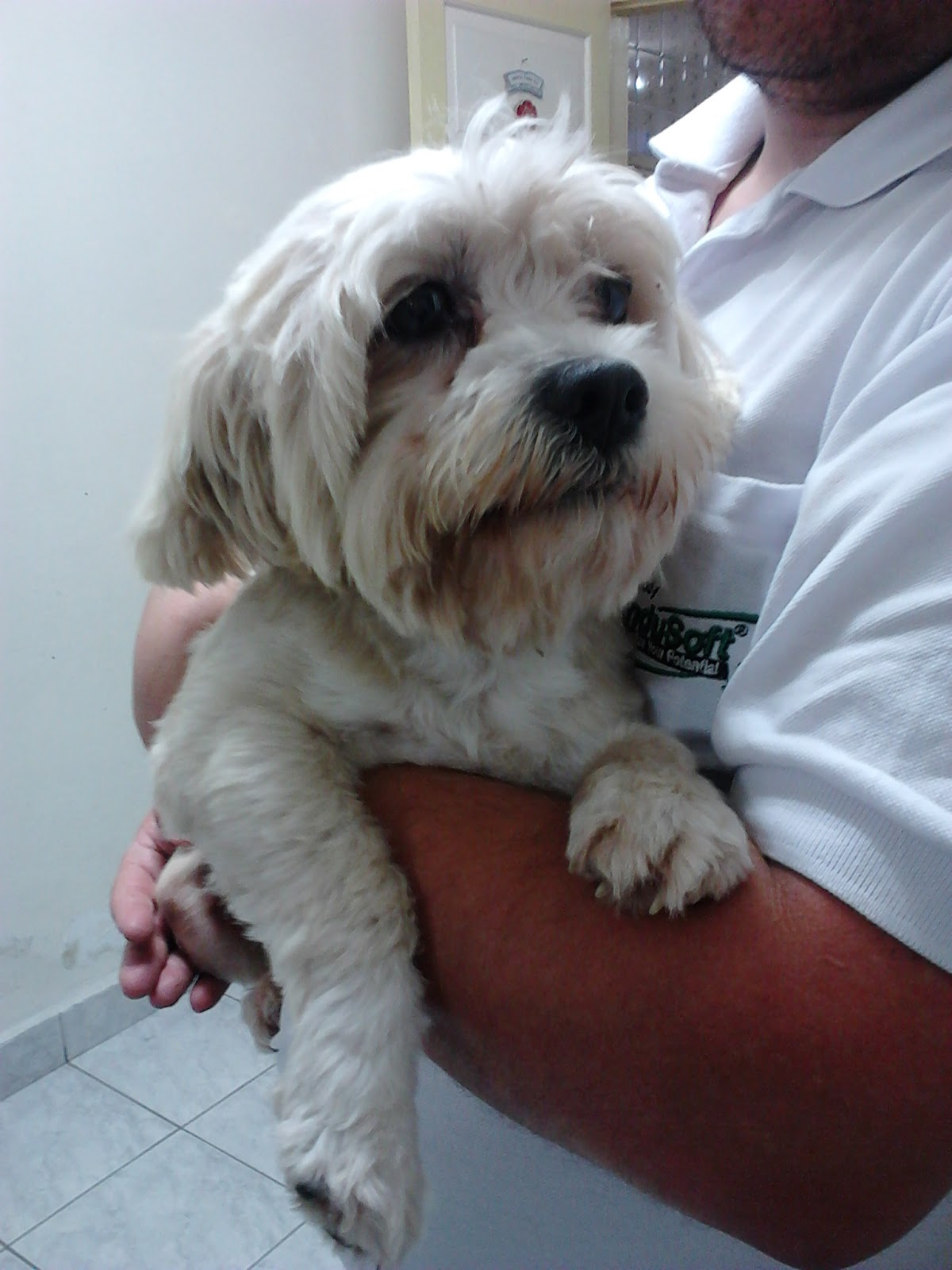 Este lhasa apso, macho, bege bem clarinho, foi encontrado em Osasco há quase um mês.